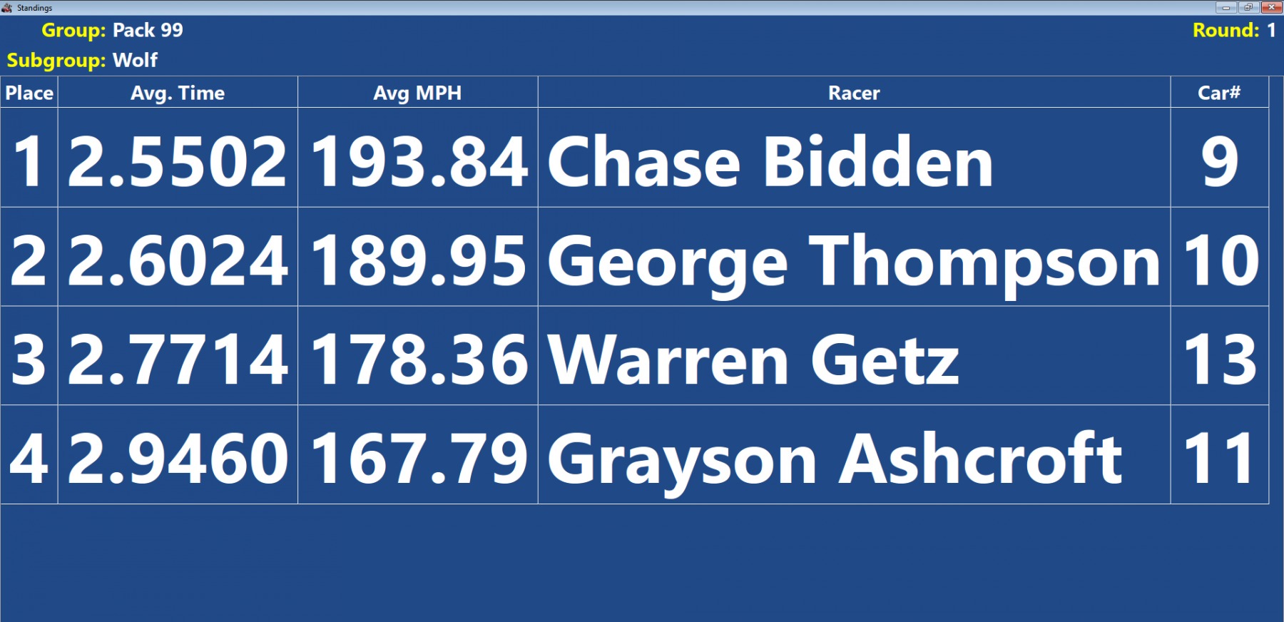 2022 Cub Scouts – Heat Results
